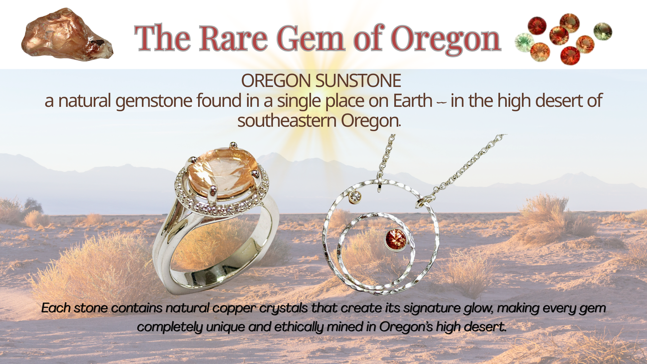 We craft jewelry using only certified Oregon Sunstone-a rare, natural gem found nowhere else in the world.