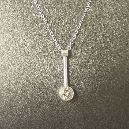 Silver Modern Bar Necklace with Brilliant "Champagne" Sunstone