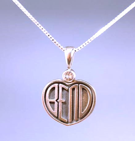 "I Love Bend" Heart Pendant set with Champagne Oregon Sunstone.