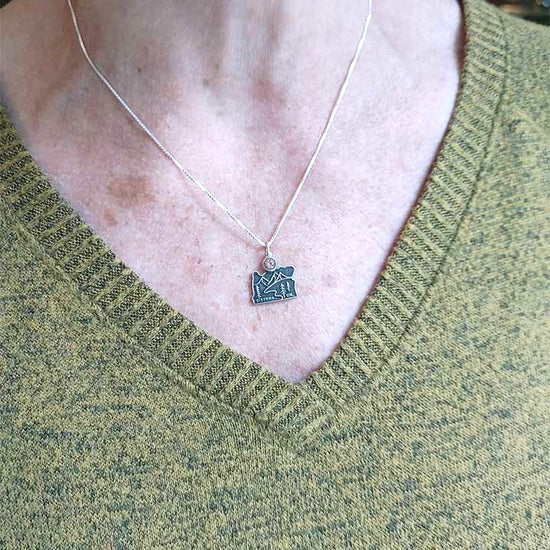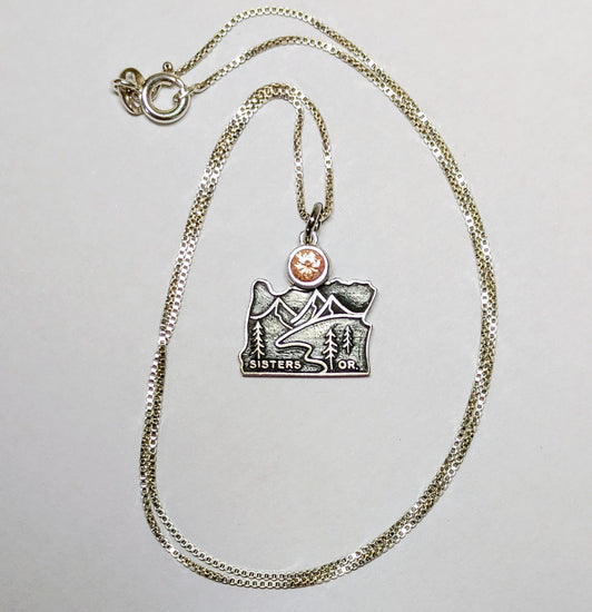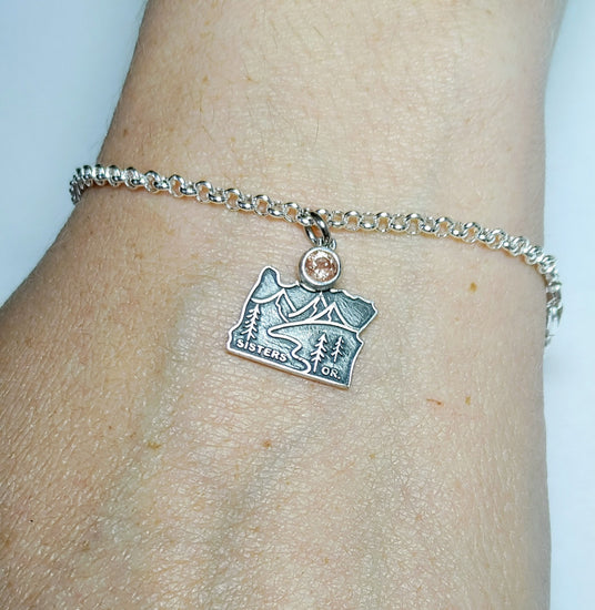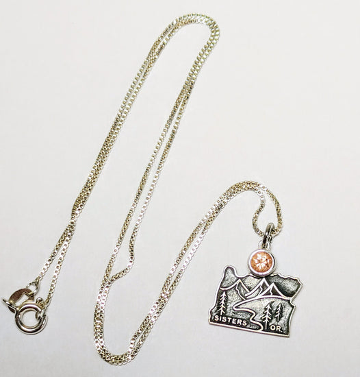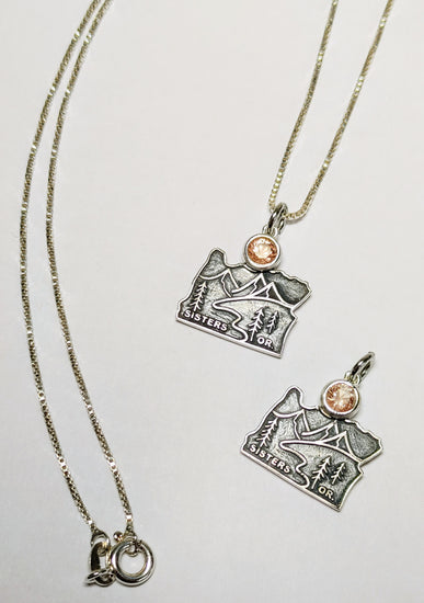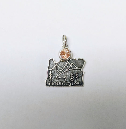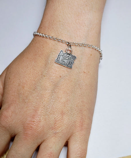 Celebrate the special bond between sisters and your love for the quaint town of Sisters, Oregon, with our enchanting Sterling Silver Sisters Charm. This elegant piece features a delicately crafted charm shaped like the state of Oregon, beautifully detailed with a scenic mountain landscape that evokes the natural beauty of the Pacific Northwest.