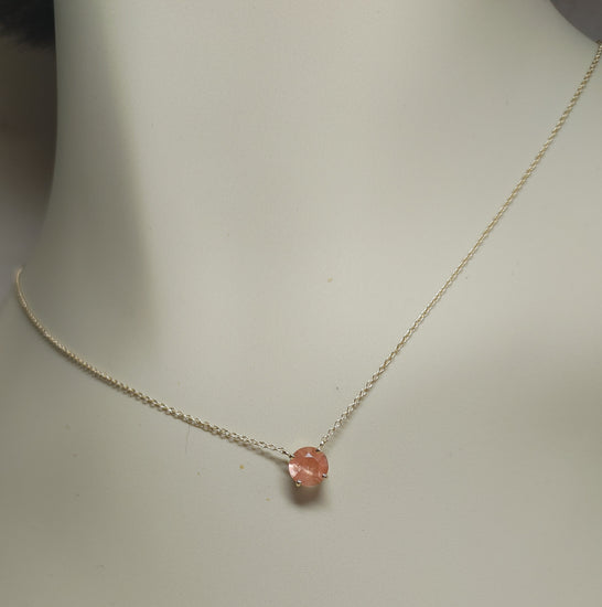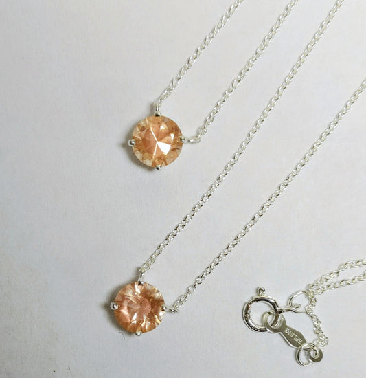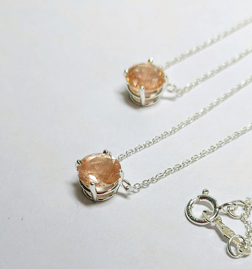Elevate your everyday elegance with this timeless station necklace, a classic must-have for any jewelry collection. At its center glows a brilliant 6.5mm round Peach Schiller Oregon Sunstone, prized for its natural shimmer and warm, inviting tones. Weighing approximately 1.00 carat, this beautiful gem is securely set in a handcrafted solid 14K yellow gold or silver basket, allowing the light to dance through every facet.